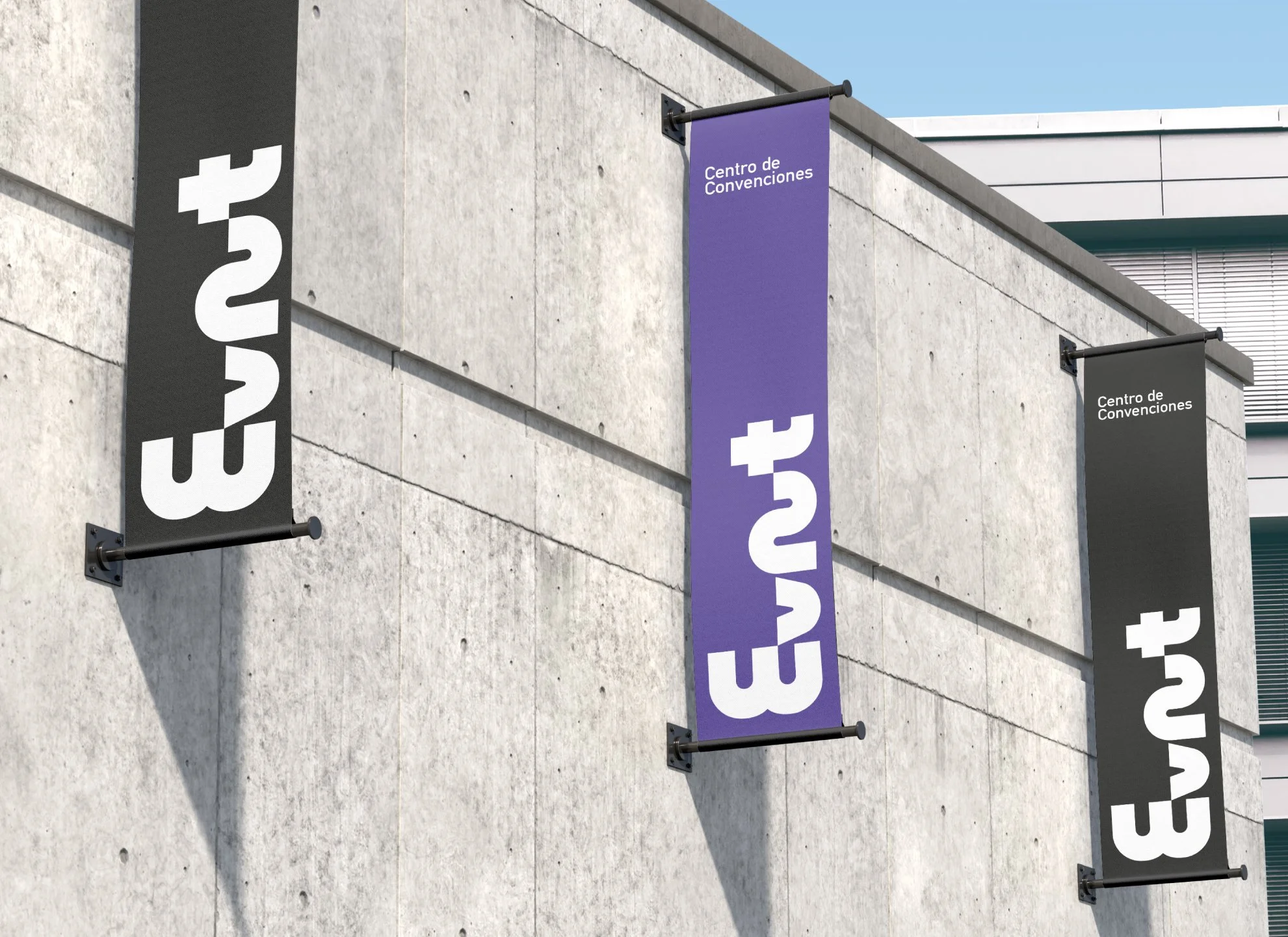 Diseño de identidad y señalética para Evnt, una empresa dedicada al desarrollo de eventos, convenciones y ferias en el Centro de Convenciones de Guayaquil.